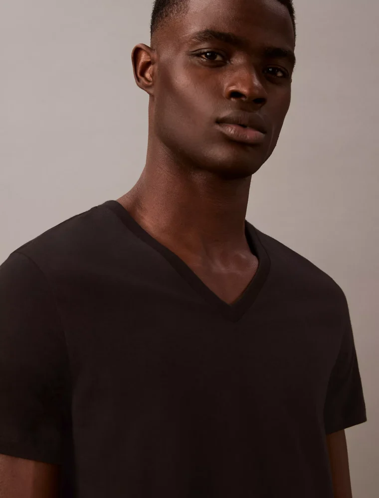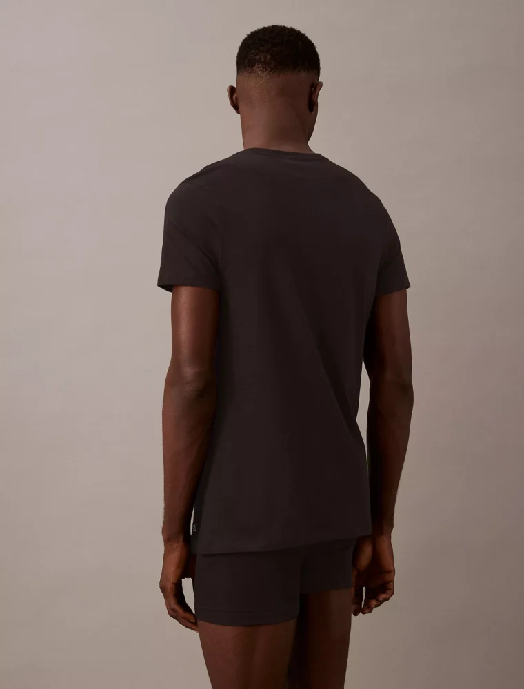 A signature classic, this essential T-shirt comes in a 3-pack. Designed with pure cotton for a soft hand and breathable comfort, finished with a Calvin Klein logo at the hem for an ideal layering undershirt. Cut in a classic fit.